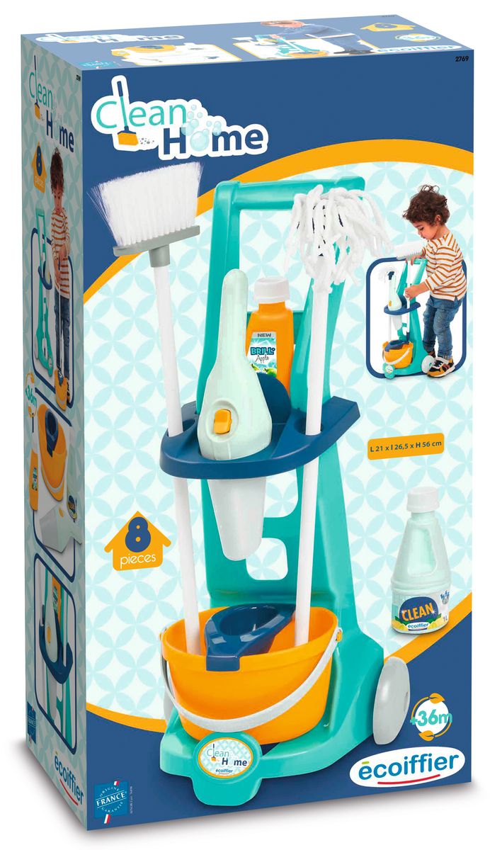 TÄIELIK KOMPLEKT: Käru, mis sisaldab kõiki vajalikke tarvikuid puhta kodu jaoks: hispaania luud oma ämbriga, mis on varustatud väänajaga, luud, käsitolmuimeja ja 2 pudelit majapidamistarbeid.