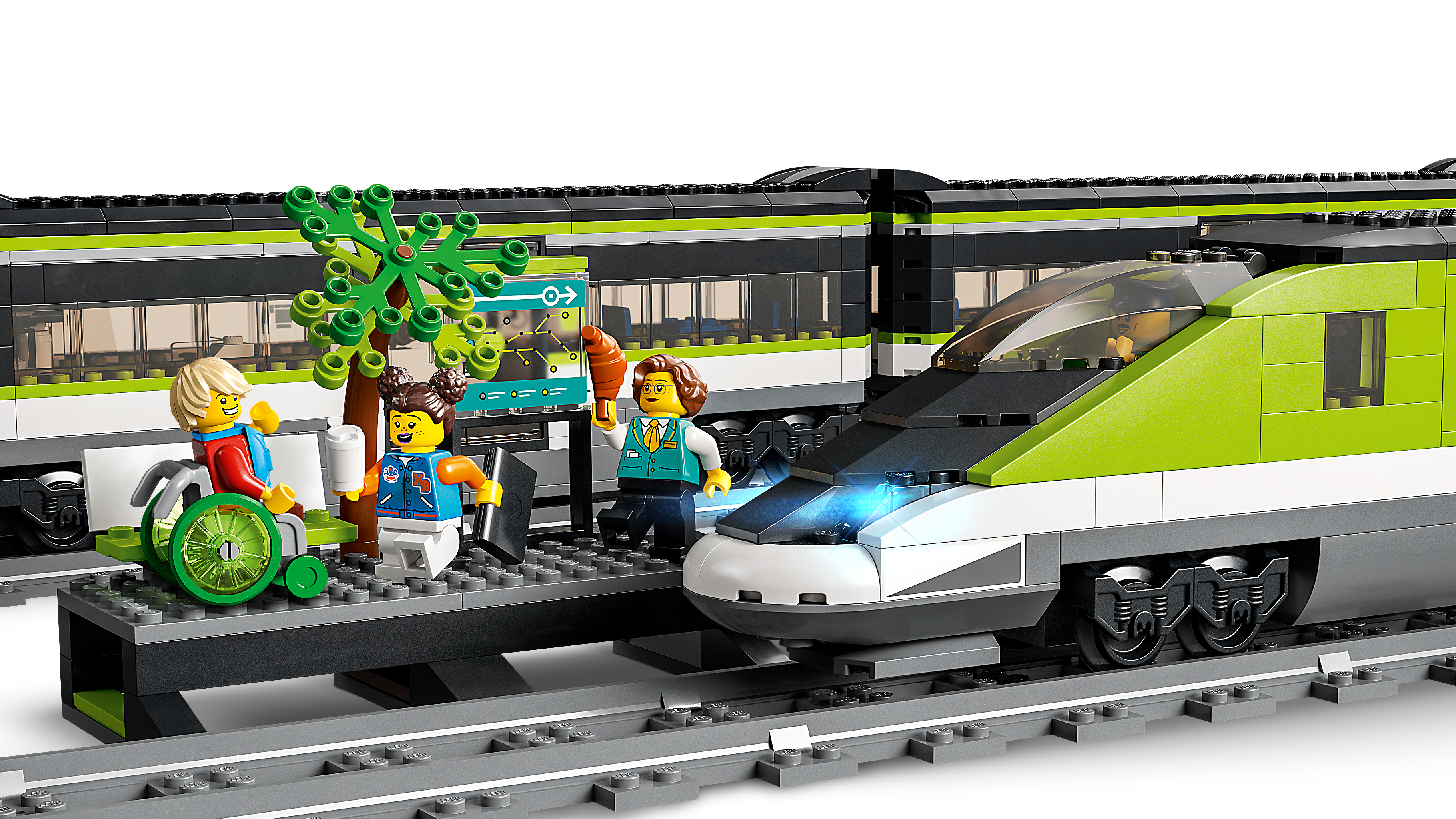 • Komplektis on LEGO® minifiguuritarvikud – selles kiirreisirongi komplektis on minifiguuri sülearvuti, telefon, jalgratas, ratastool, portfell, seljakott ja viinerisai