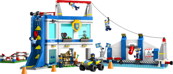 • Lõbusad funktsioonid ja detailid – lapsed saavad panna politseikadettide minifiguurid proovile mängukomplekti ronimisseinal, turnimisredelil ja laskumistrossil ning lõbusal liikuvate takistustega rajal
