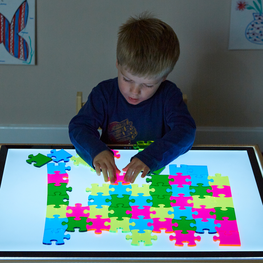 Suurepärane aksessuaar teie valguspaneeliga tegevusteks. Lapsed saavad katsetada ja uurida, kuidas tükid omavahel kokku sobivad. Akrüülplaatidest läbi paistev valgus lisab kihlumist. Erinevate efektide loomiseks proovige paneeli ülaossa lisada erinevaid atsetaadilehti. Tursked tükid sobivad ideaalselt väikestele kätele haaramiseks. Suurepärane viis sensoorse elemendi lisamiseks mustrile ja järjestamisele.