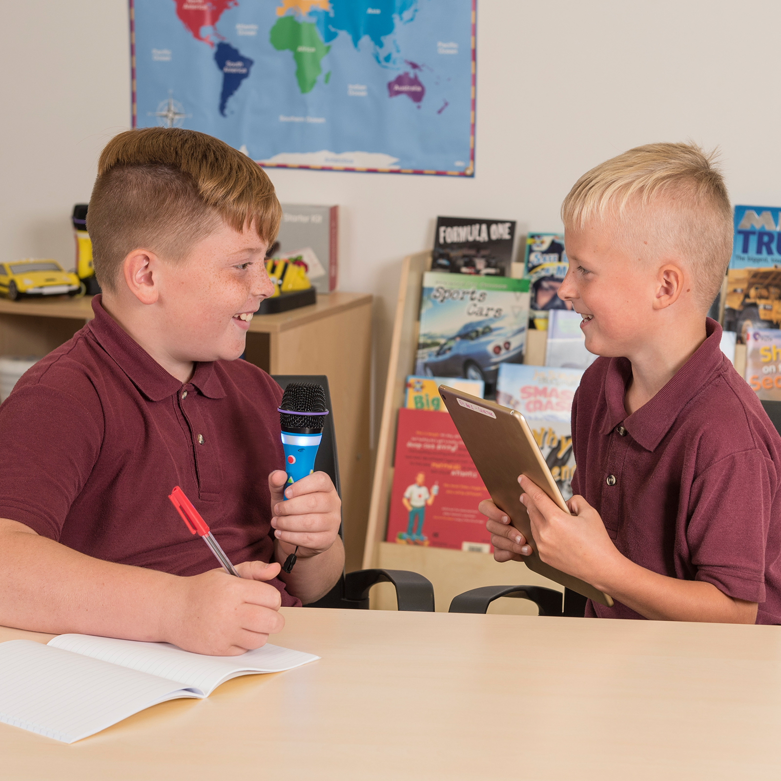 Mitmekesistage kõne- ja kuulamistegevusi selle värviliste Bluetoothi-mikrofonide komplektiga. Lihtne vahend klassitegevusteks: lapsed saavad mängida reporterit või lauljat ja see ei ole seotud arvutiga. 4-tunnise mahuga mälu saab MicroSD-kaardiga lihtsalt suurendada. Sobib ideaalselt lastele, kellel esineb valikulist mutismi. Mikrofone saab lihtsalt siduda juhtmevaba kõlariga ning luua nii taskukohane helivõimendussüsteem. Kaasas laadimisalus.