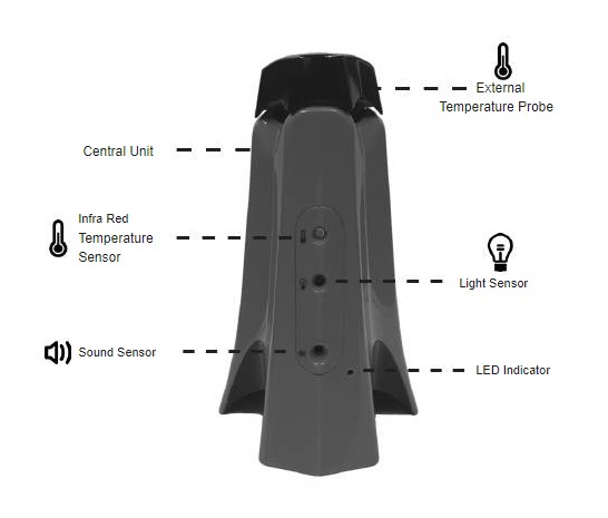 Sisseehitatud valguse, heli, ümbritseva ja infrapuna temperatuurianduriga on olemas ka väline temperatuuriandur.