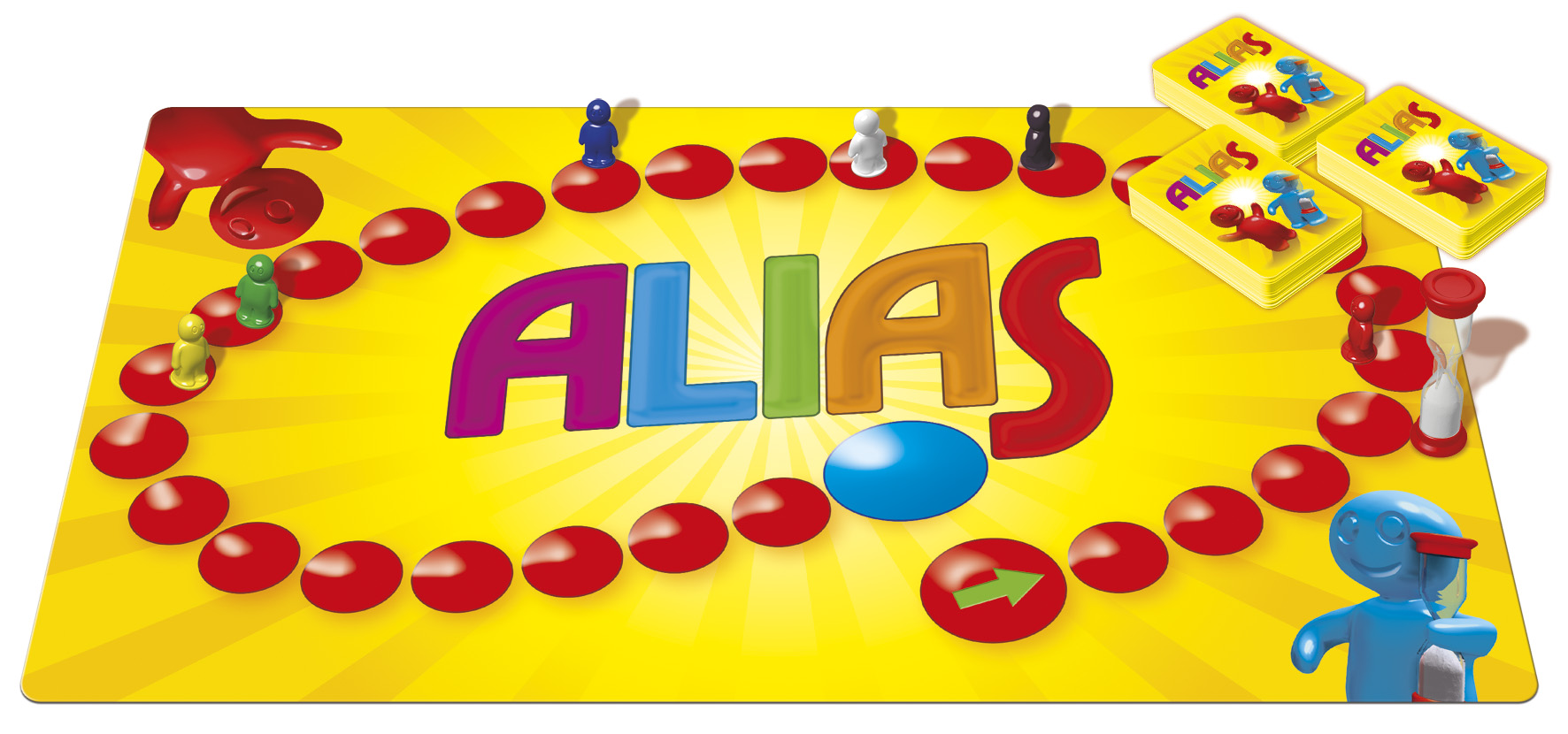 Junior Alias board game features a game board and hundreds of word cards. In addition, game pawns, a sand timer, and the rules are included.