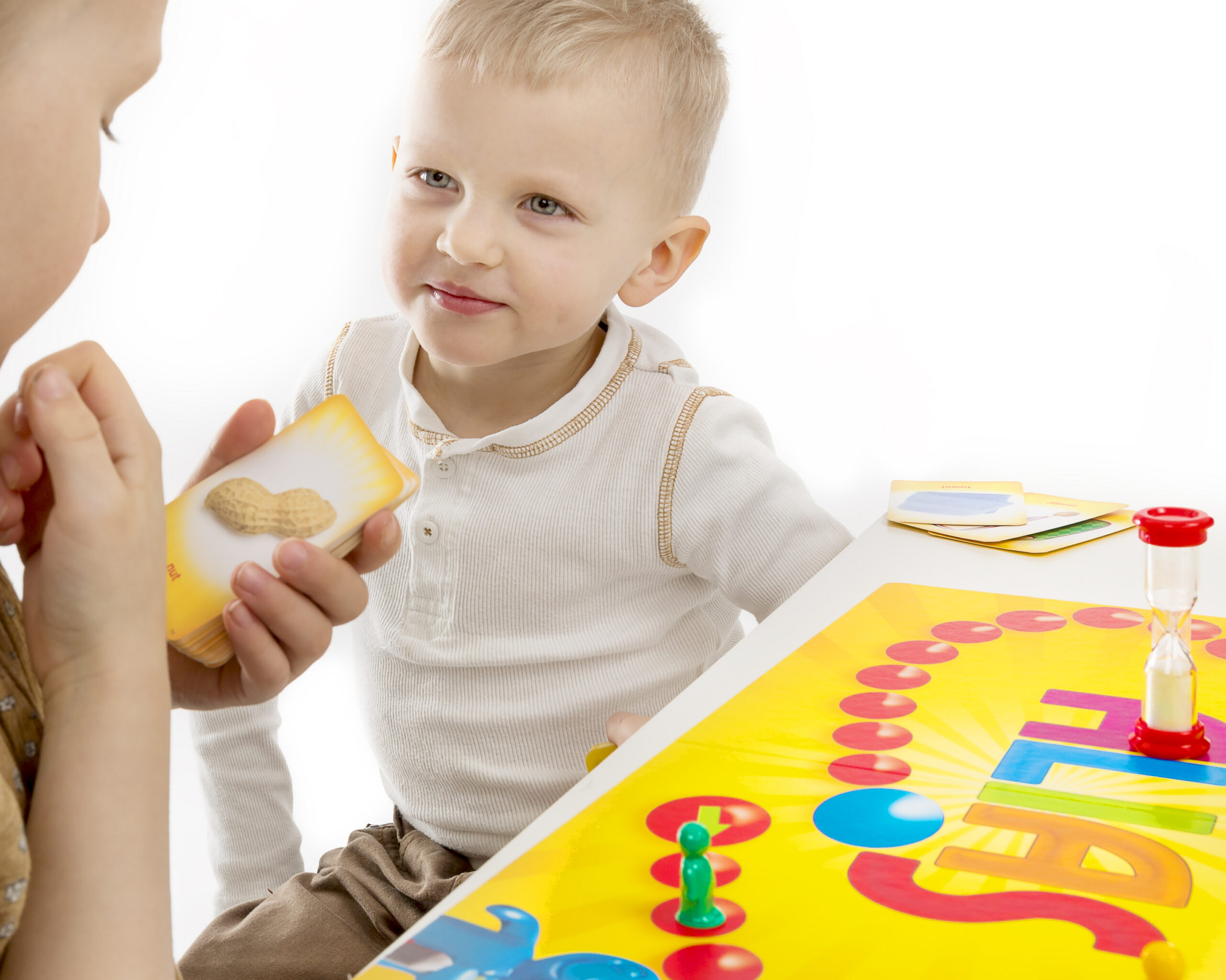 Explain words and pictures to your teammates without actually saying the word that is being explained, but by using synonyms and opposites, hints, uttering sounds etc. instead. Children who can’t read can play this game too, as the pictures show the word to be explained. Each team tries to guess as many words as possible before the sand in the timer runs out. The game contains words and pictures familiar to children.