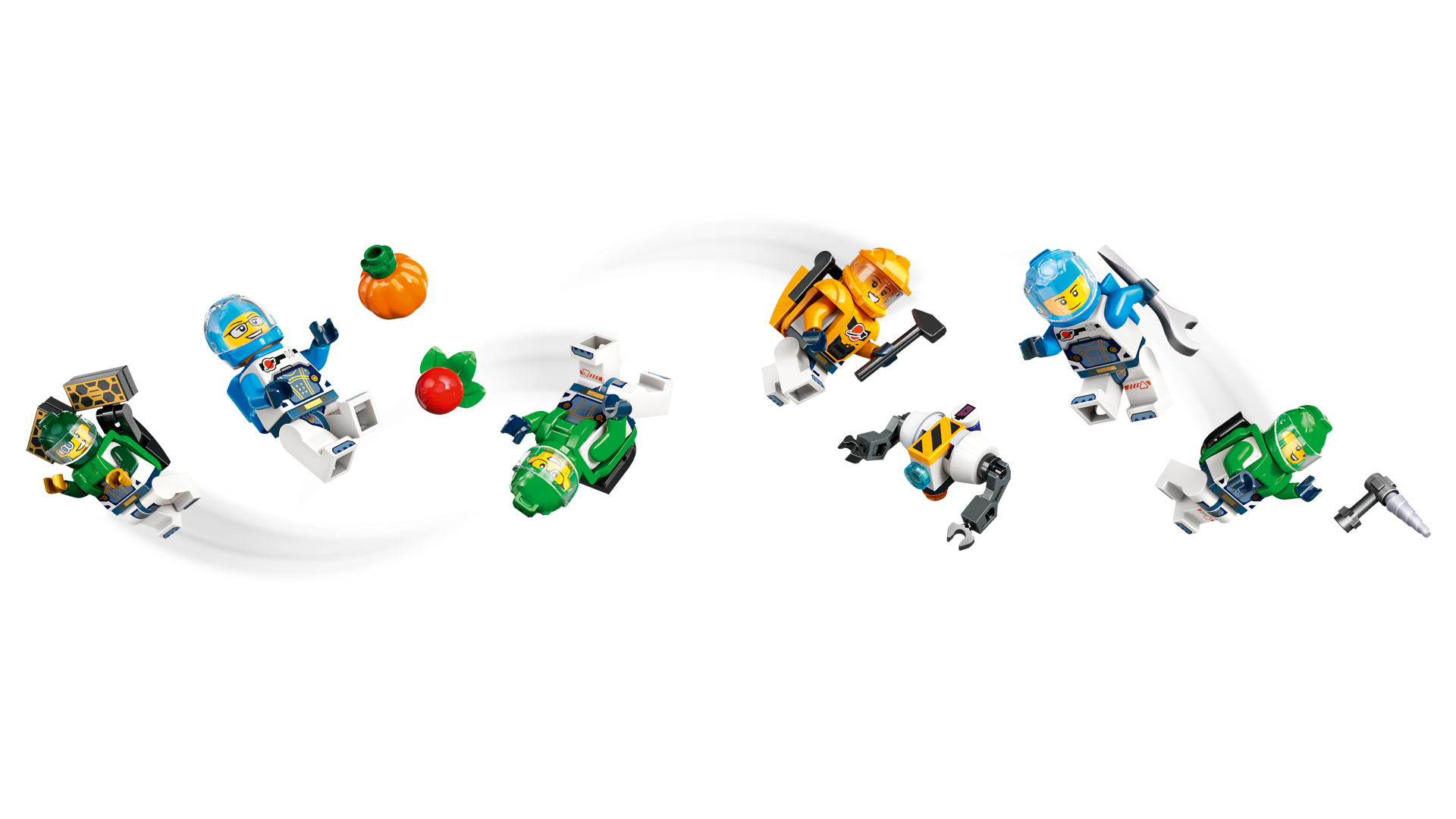 • Mis on karbis? – sisaldab mängukosmosejaama, kosmoselaeva, kosmoseratast ja toakapsleid, sealhulgas teaduslaborit, töökoda, kööki, magamisruumi ja biokuplit ning kuue astronaudi minifiguuri