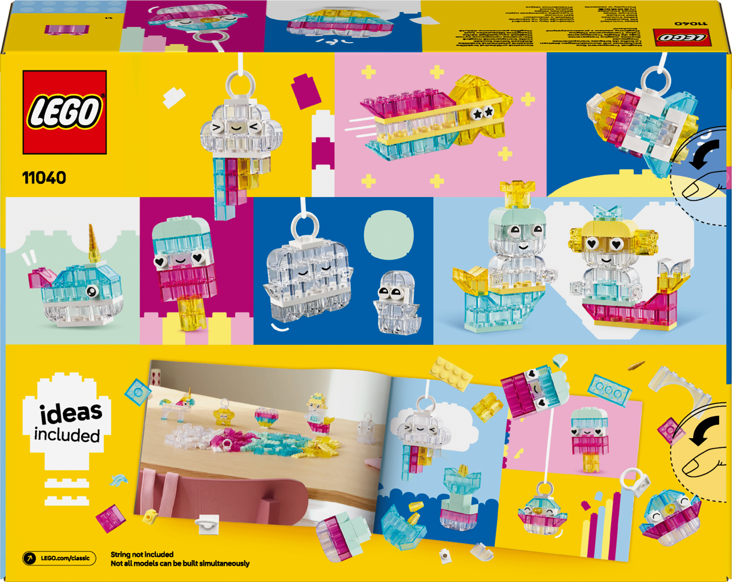 LEGO Classic maagilise läbipaistva kasti ehitus- ja esitluskomplekt innustab lapsi looma lummavaid mudeleid värvilistest poolläbipaistvatest klotsidest.