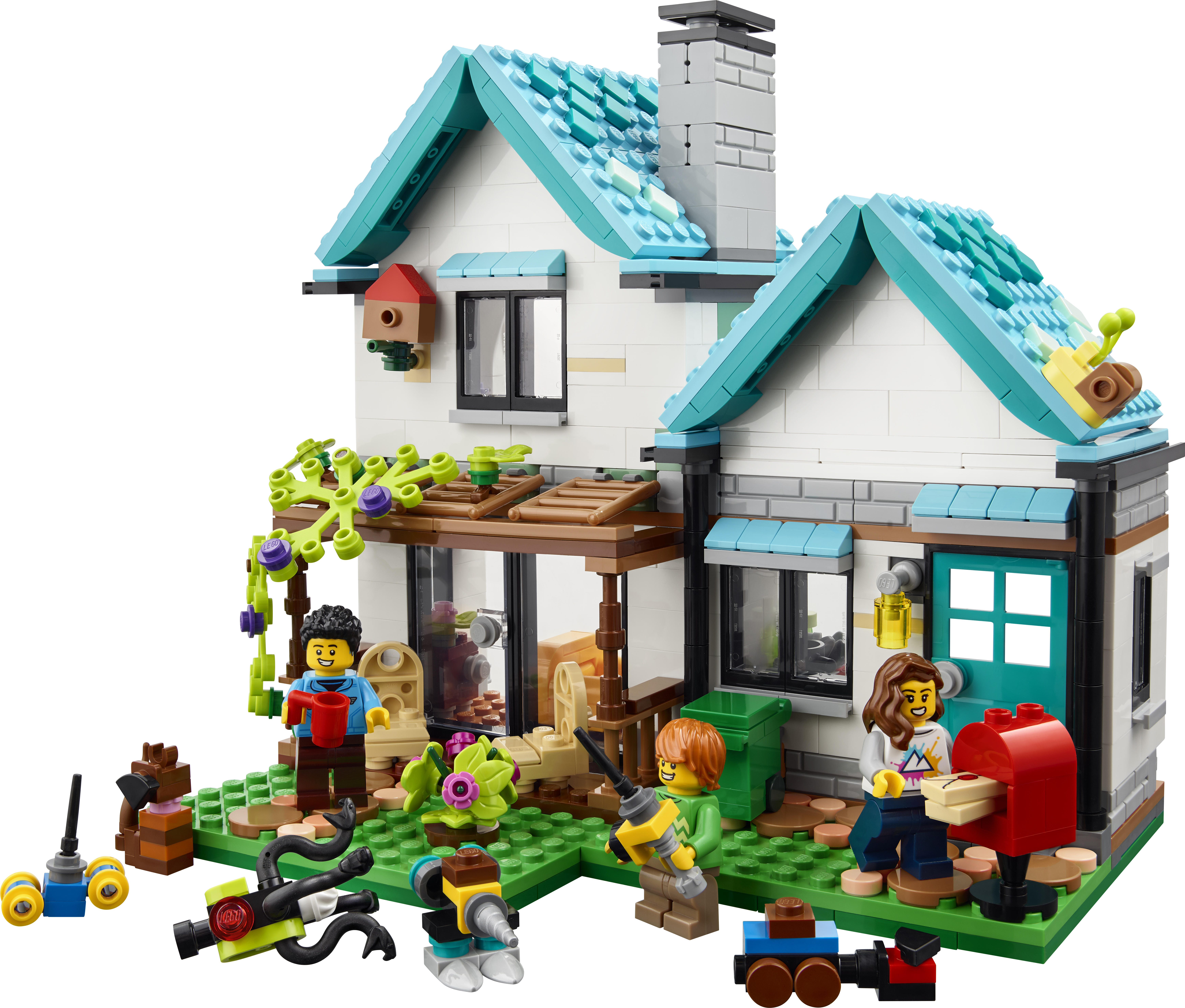 • Kolm minifiguuri – majamängukomplektis on kolm minifiguuri (kaks täiskasvanut ja üks laps), lapsed saavad vahetada nende juukseid ja riideid, et luua oma tegelaskujud