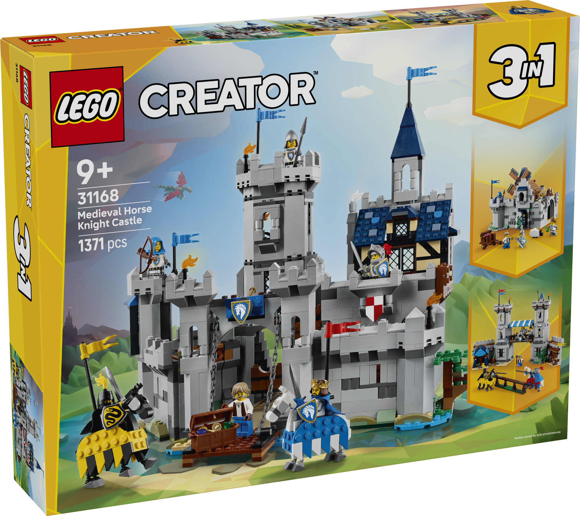 • 3 keskaegset ehitusmänguasja ühes karbis – LEGO® Creator 3 ühes keskaegse hoburüütli lossi ehitusmänguasja saab ümber ehitada veel kaheks mudeliks, kasutades samu klotse