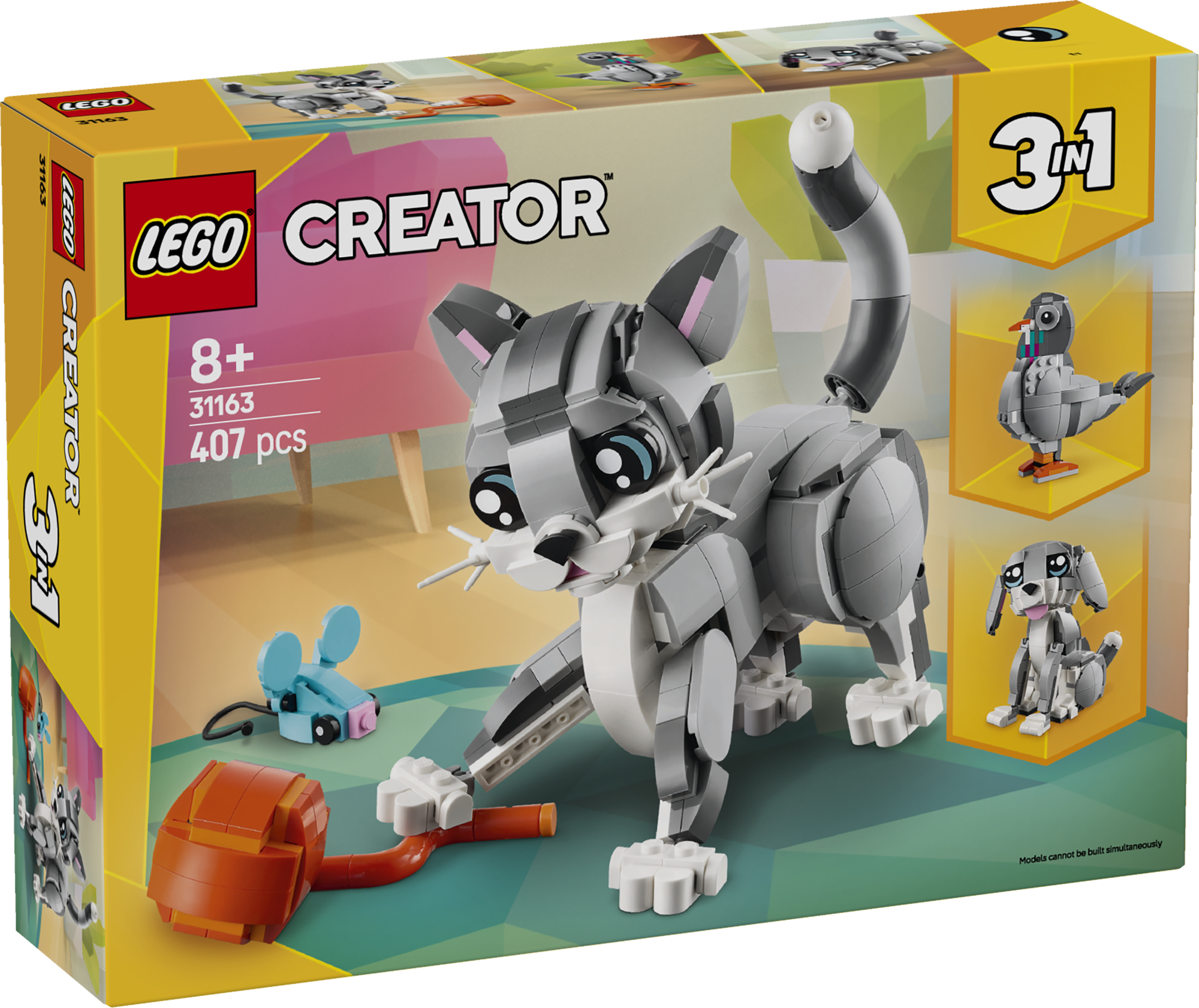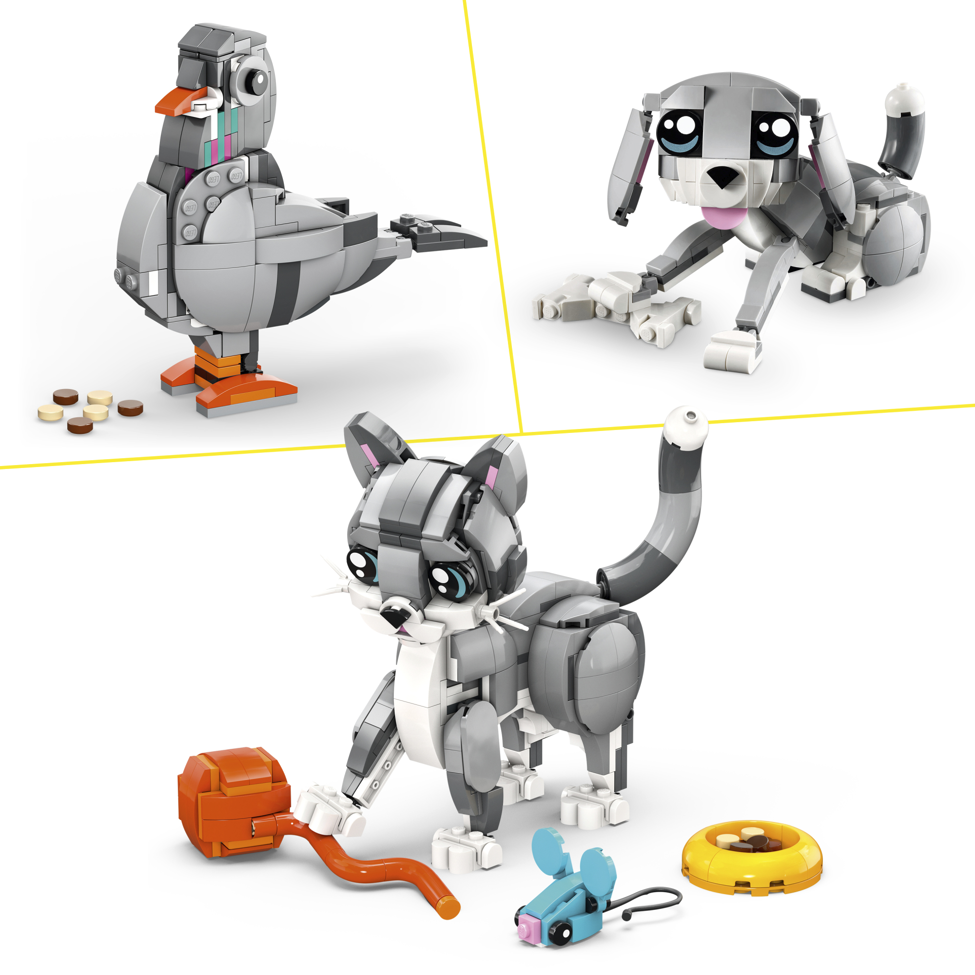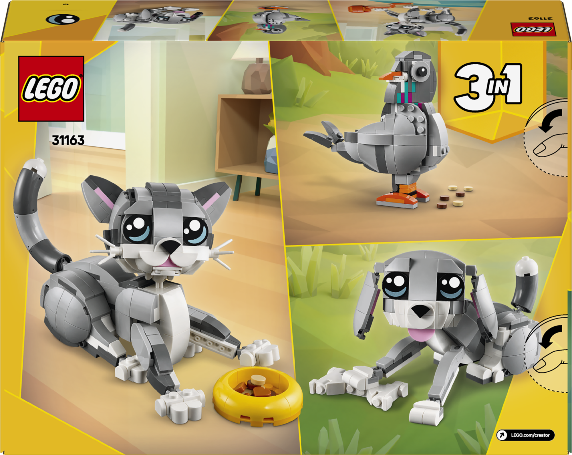 Tüdrukud ja poisid saavad selle LEGO Creator 3-ühes Mängiva kassi komplektiga lõbutseda, kui ehitavad kassi ümber koera- või tuvimänguasjaks.