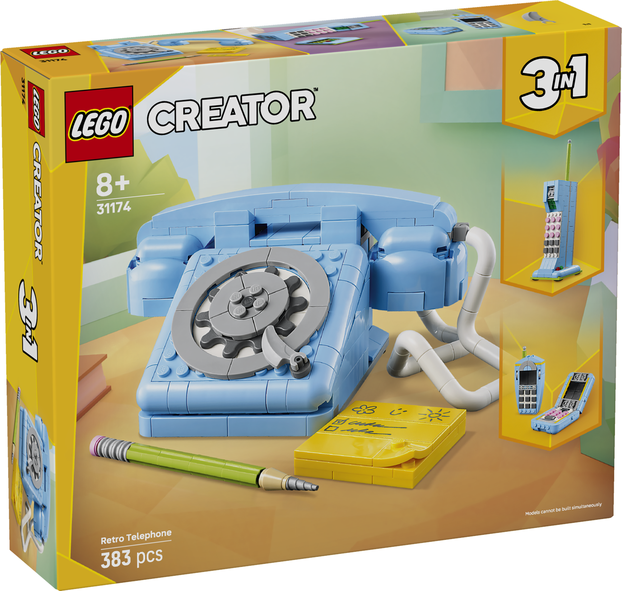 • Kolm retrotelefoni komplekti ehitusvõimalust ühes karbis – LEGO® Creator kolm-ühes Retrotelefon võimaldab alates 8-aastastel lastel ehitada ja ümber ehitada kolm retromudelit samade klotsidega