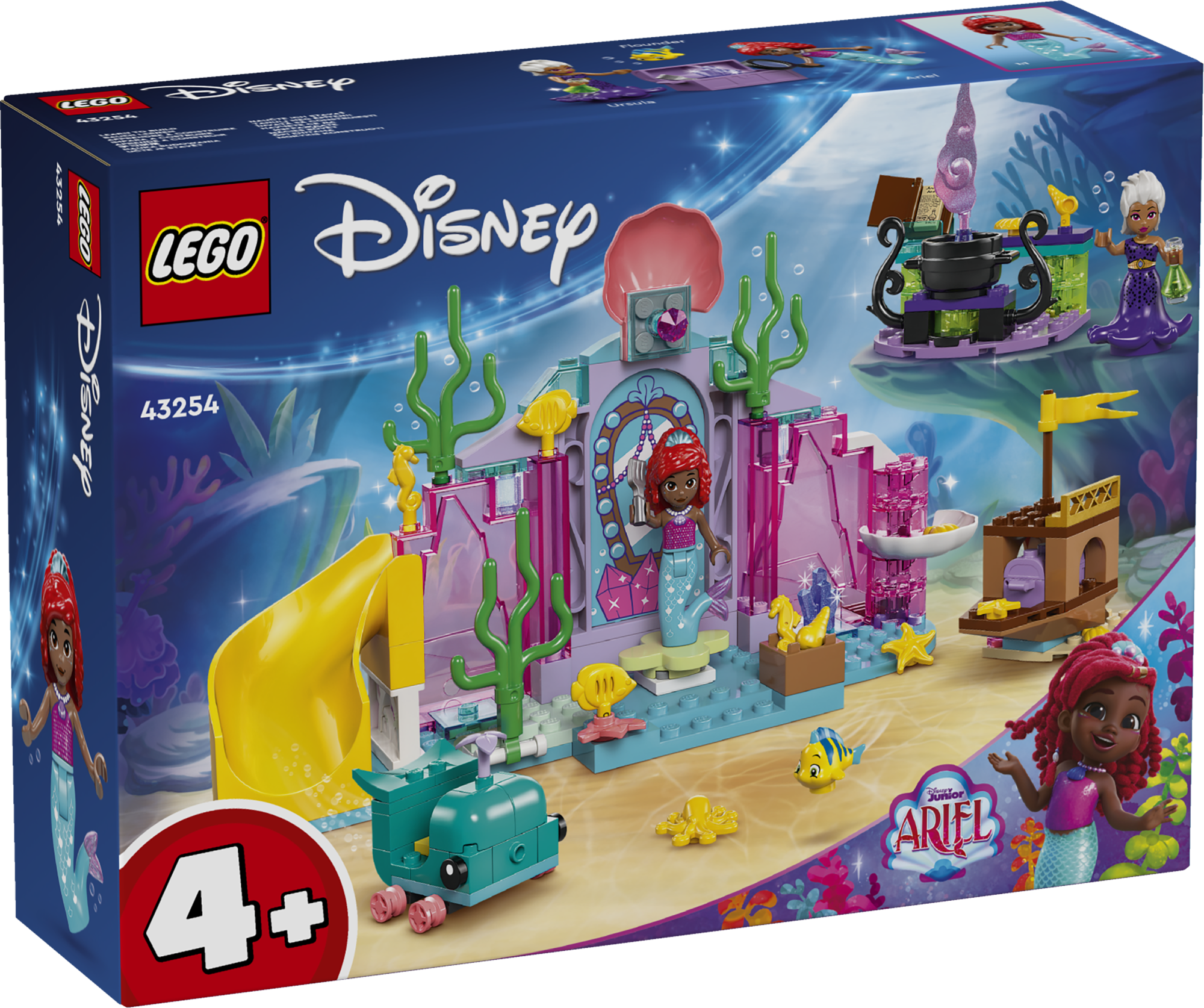 • Loovmänguks valmis – selles kokkupandavas komplektis on kristallkoobas, mis on inspireeritud Disney Juniori sarjast Ariel, Ursula ja Ariel LEGO® ǀ Disney mininukufiguurid ning Flounderi LEGO ǀ Disney kalafiguur