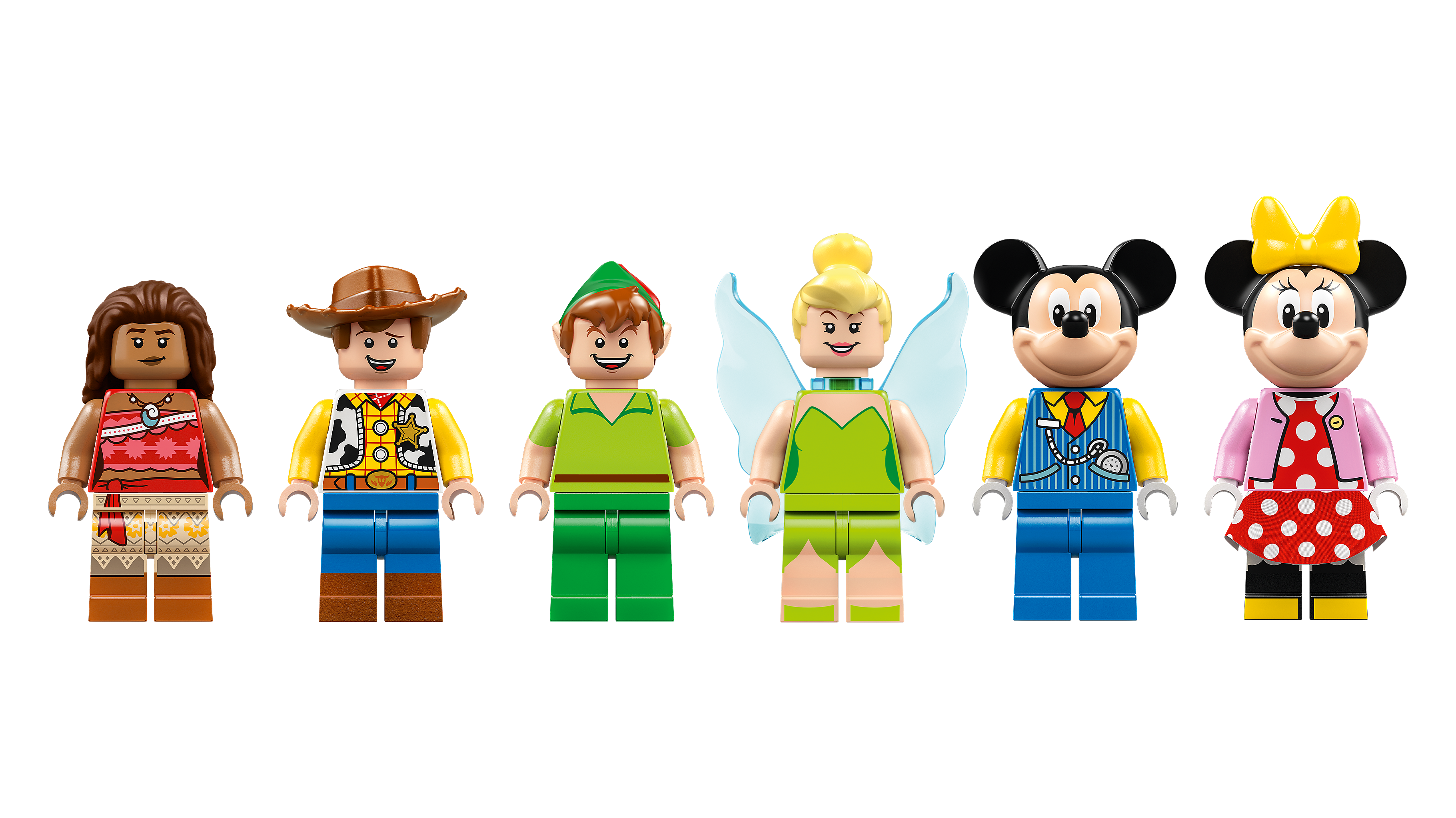 Vaimusta noort ehitajat LEGO® ǀ Disney komplektiga, kuhu kuulub neli kokkupandavat rongisektsiooni, jaam, kuus LEGO minifiguuri ja palju tarvikuid.