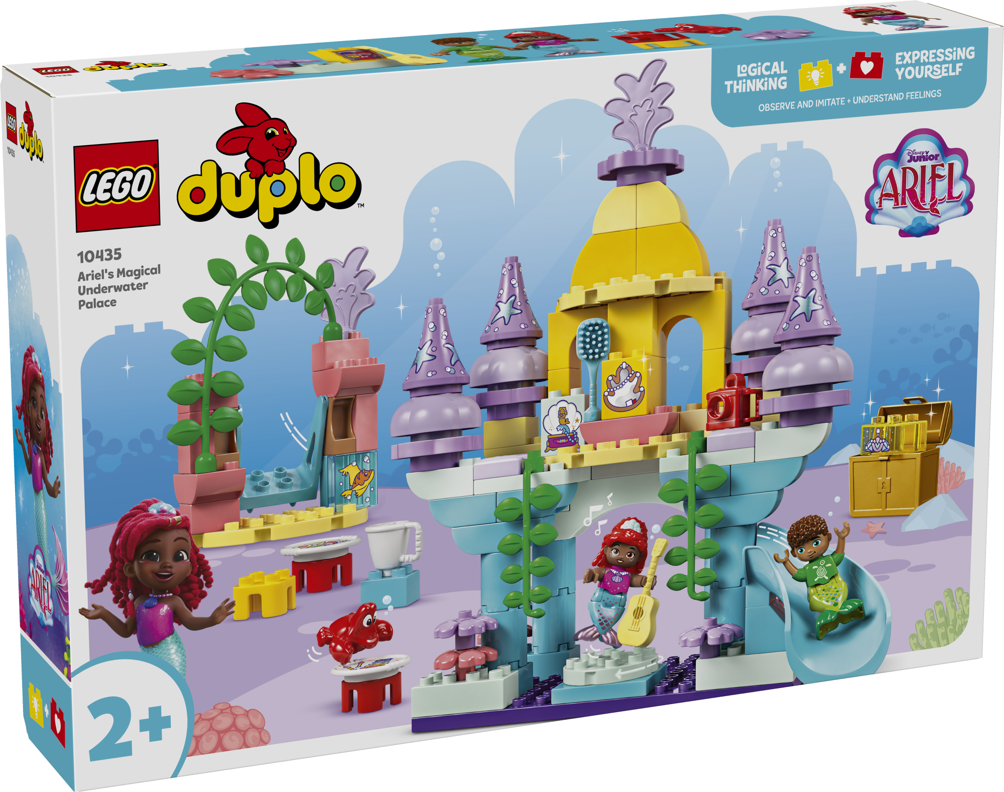 • Kolm tuttavat tegelaskuju – koolieelikud saavad avastada Disney Juniori telesarjast Ariel pärit kokkupandava mängulossi maagilise funktsioone koos LEGO® DUPLO® Arieli, Fernie ja Sebastiani figuuridega