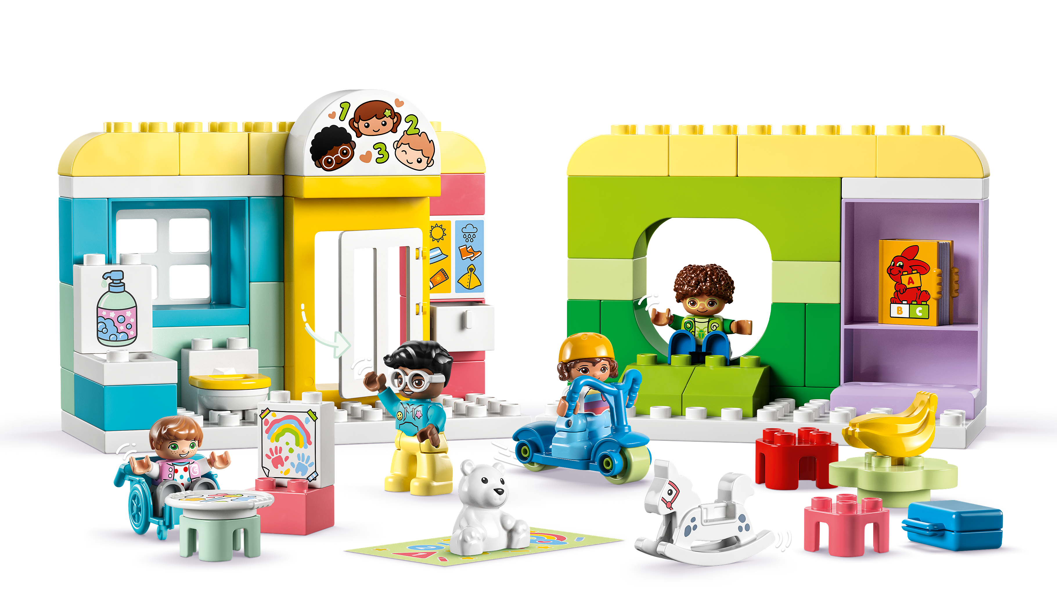 Alates 2-aastased väikelapsed saavad nautida sõpradega lõbutsemist komplektiga LEGO DUPLO Town Elu päevakeskuses (10992).