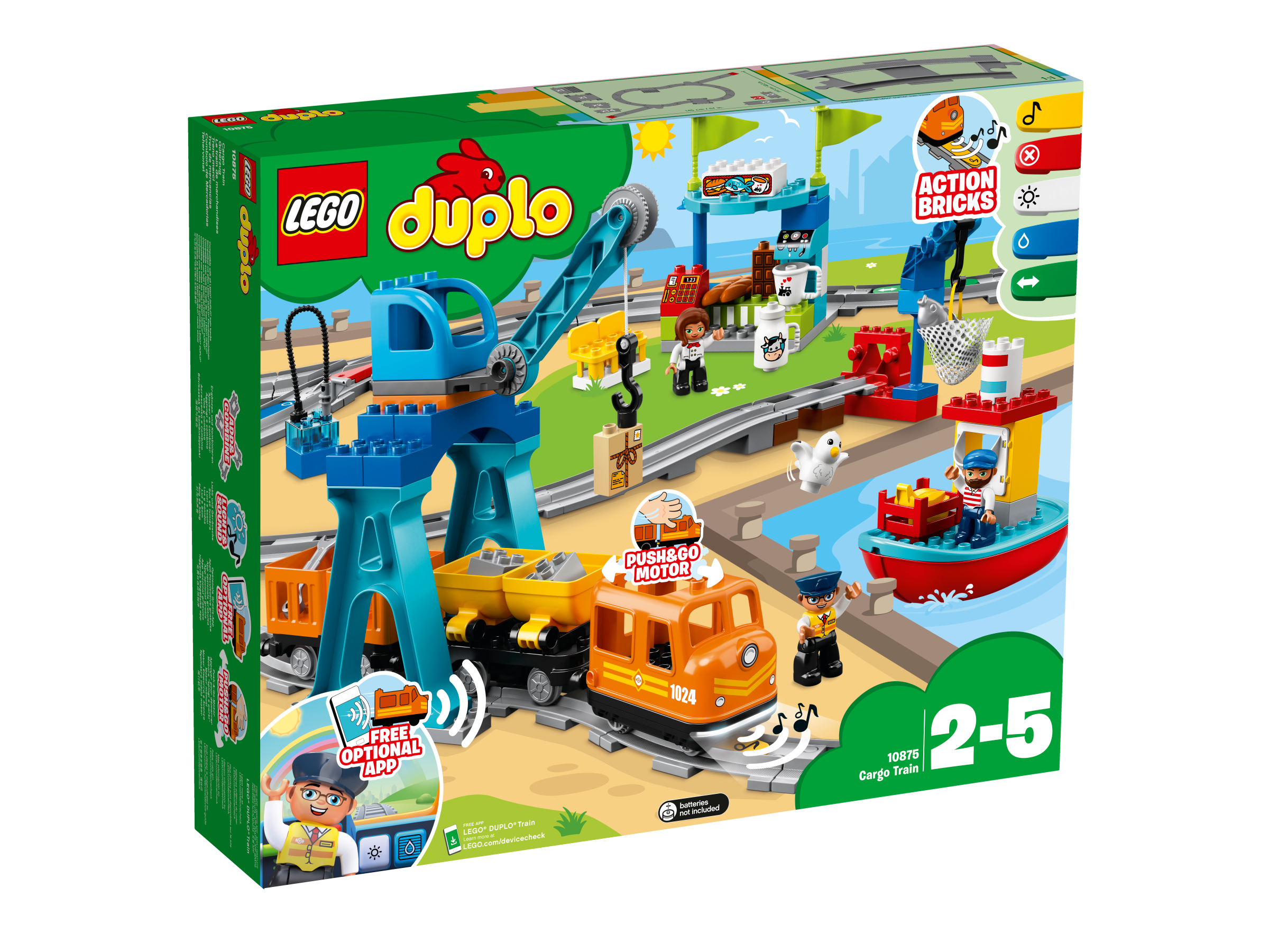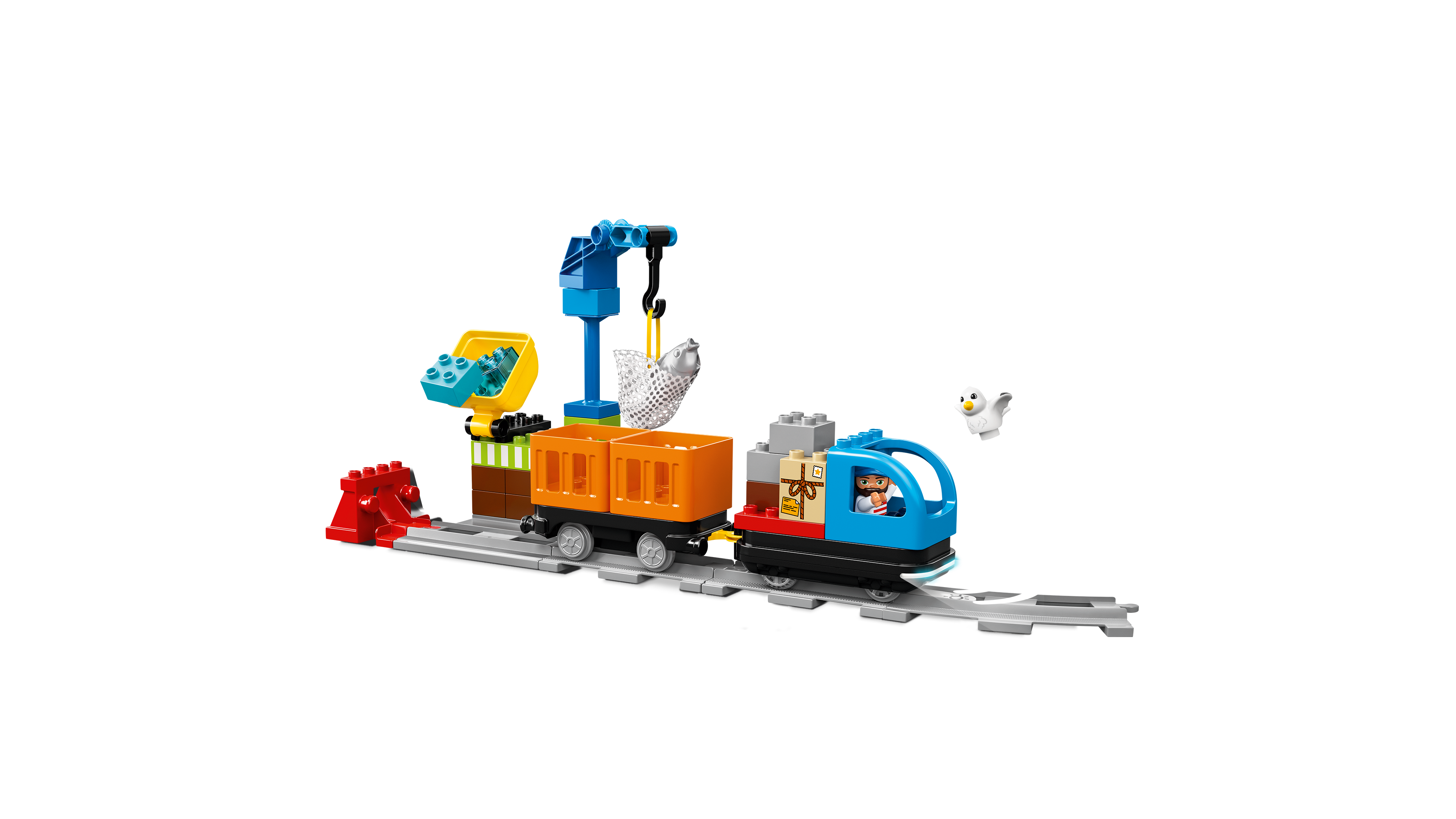 Hüppa LEGO® DUPLO® kaubarongile, mille komplektis on käepärased aktiivklotsid, sõitma lükkamise funktsioon, tuled ja helid ning soovi korral ka rakendus digitaalselt mängimiseks.