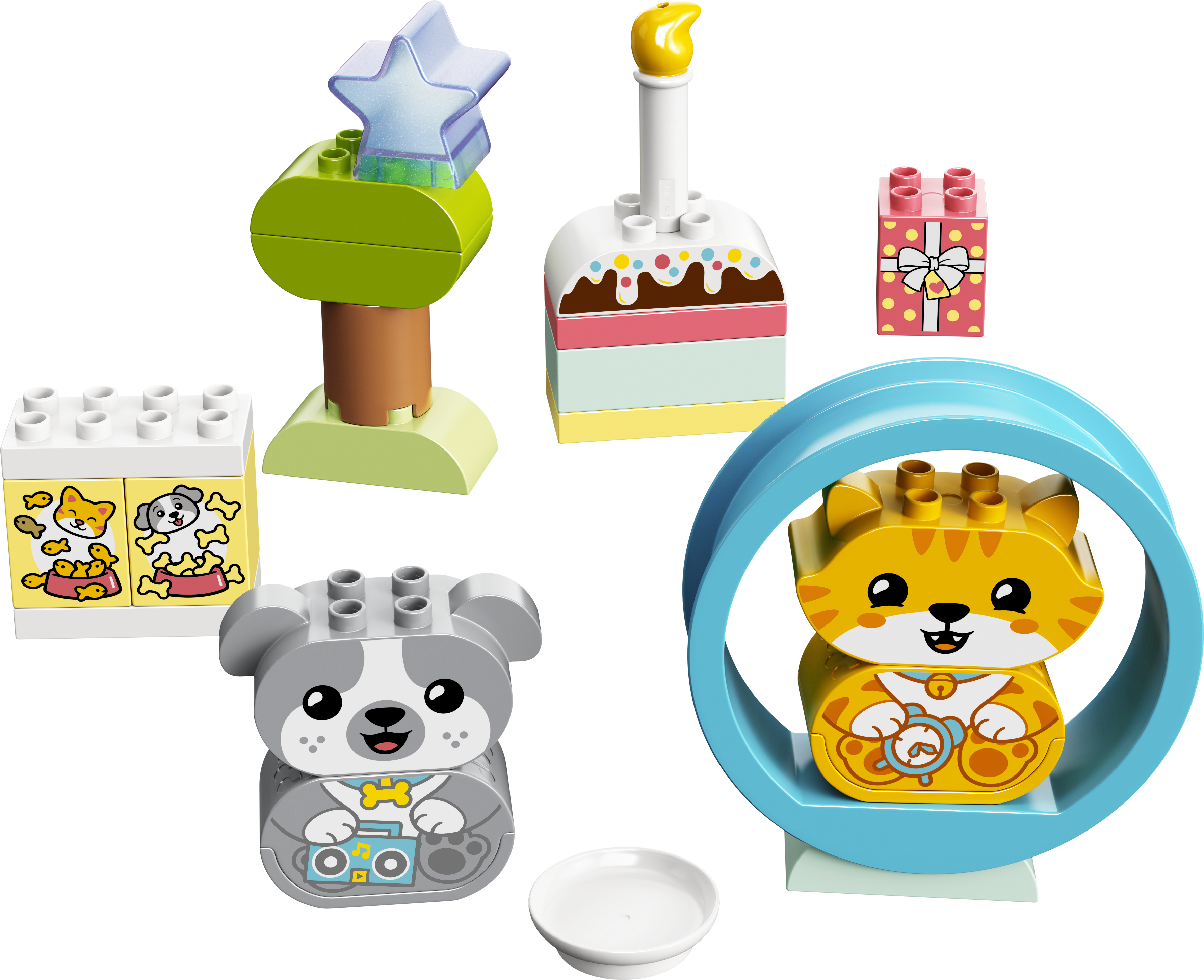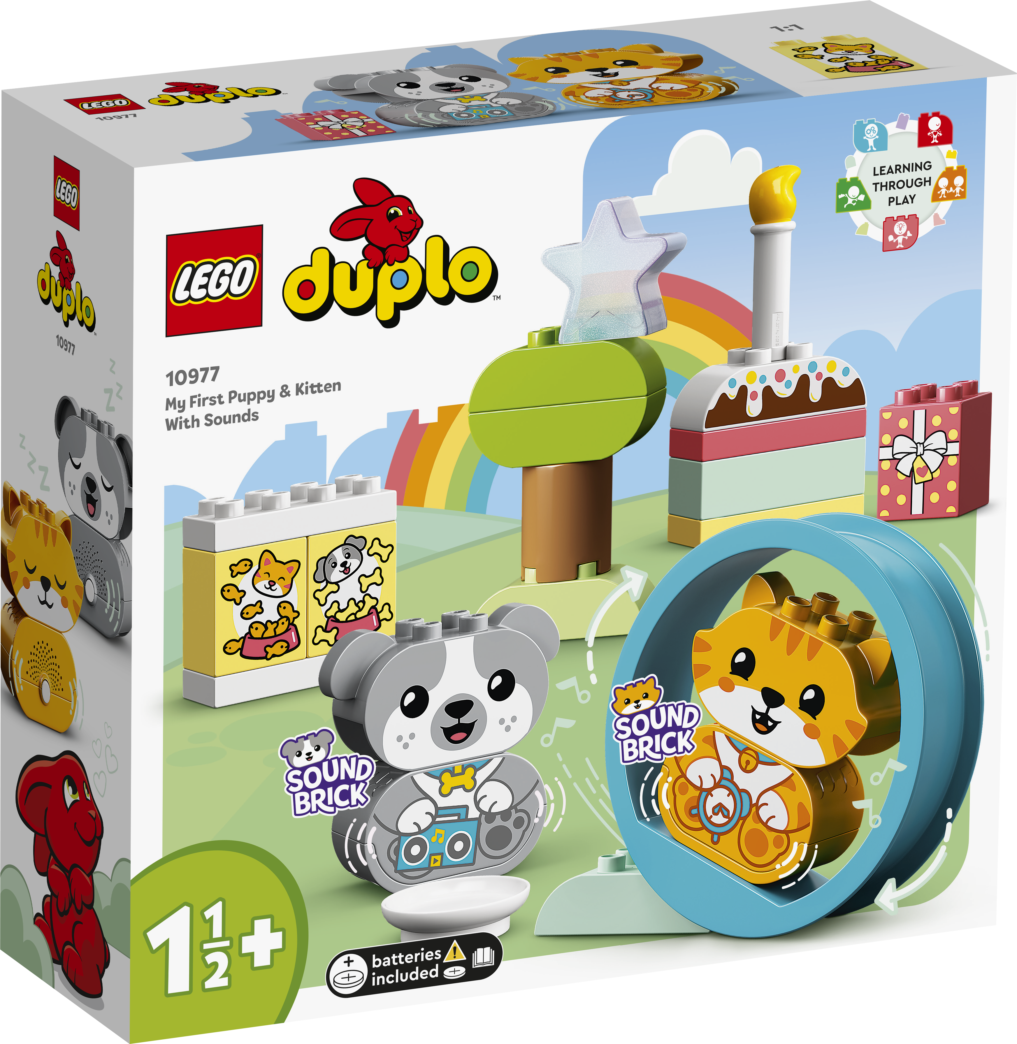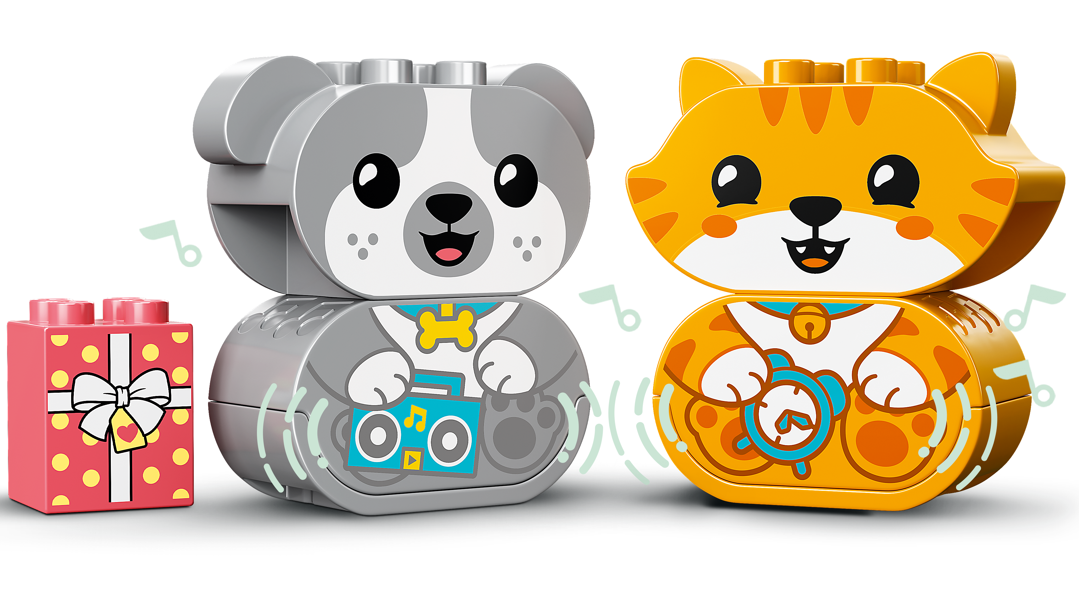 • Lemmikloomad koolieelikutele – mängukomplekt LEGO® DUPLO® minu esimene helidega kutsikas ja kassipoeg (10977) pakub loomi armastavatele väikelastele mängulisi võimalusi õppimiseks