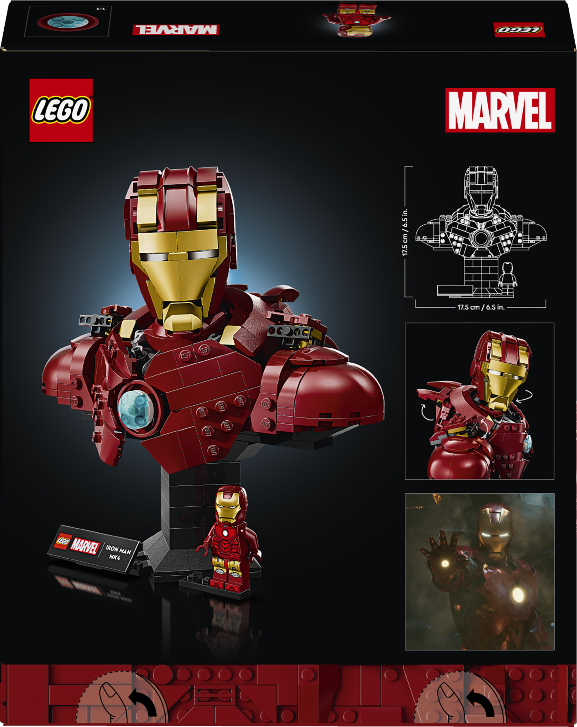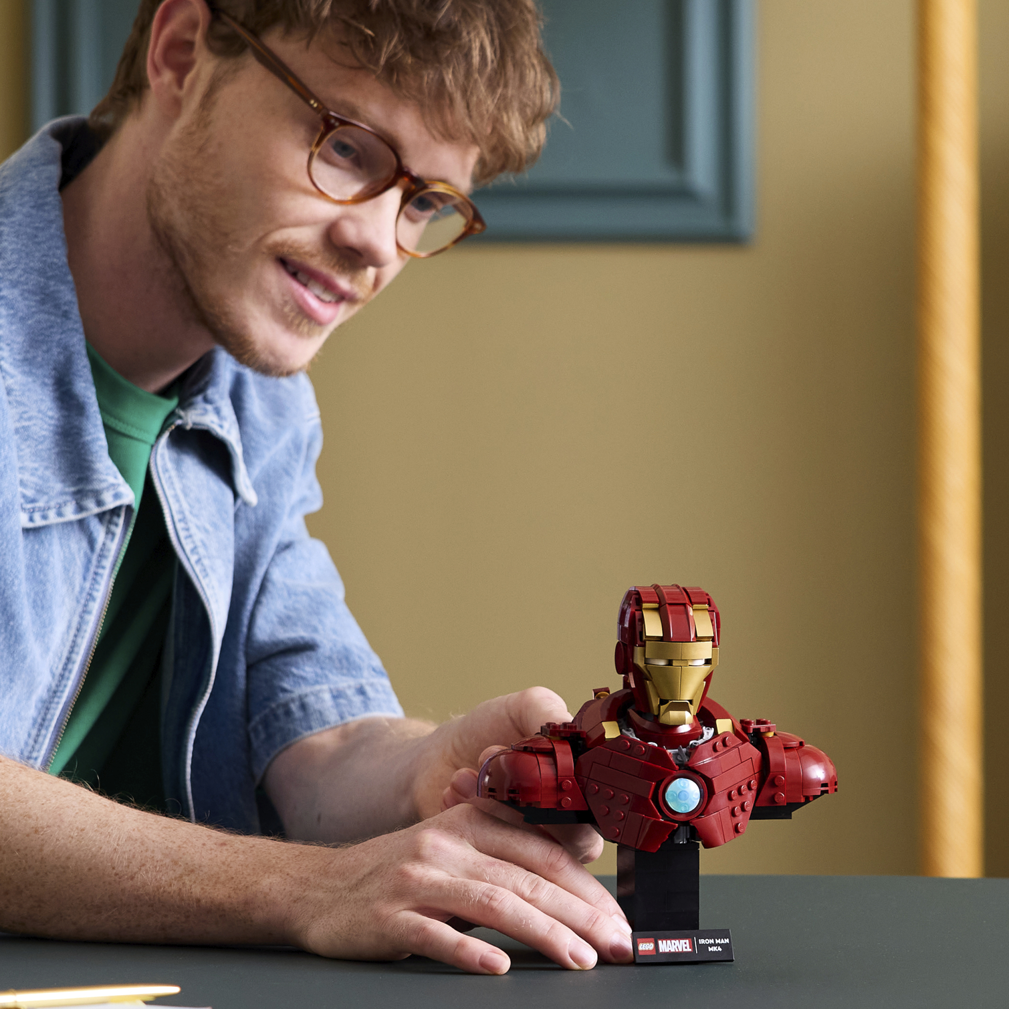• LEGO® ǀ Marvel Iron Mani figuur täiskasvanutele – Iron Man MK4 büst on kogutav ehitus- ja esitlusomplekt kogenud mudelivalmistajatele ja superkangelaste täiskasvanud fännidele
