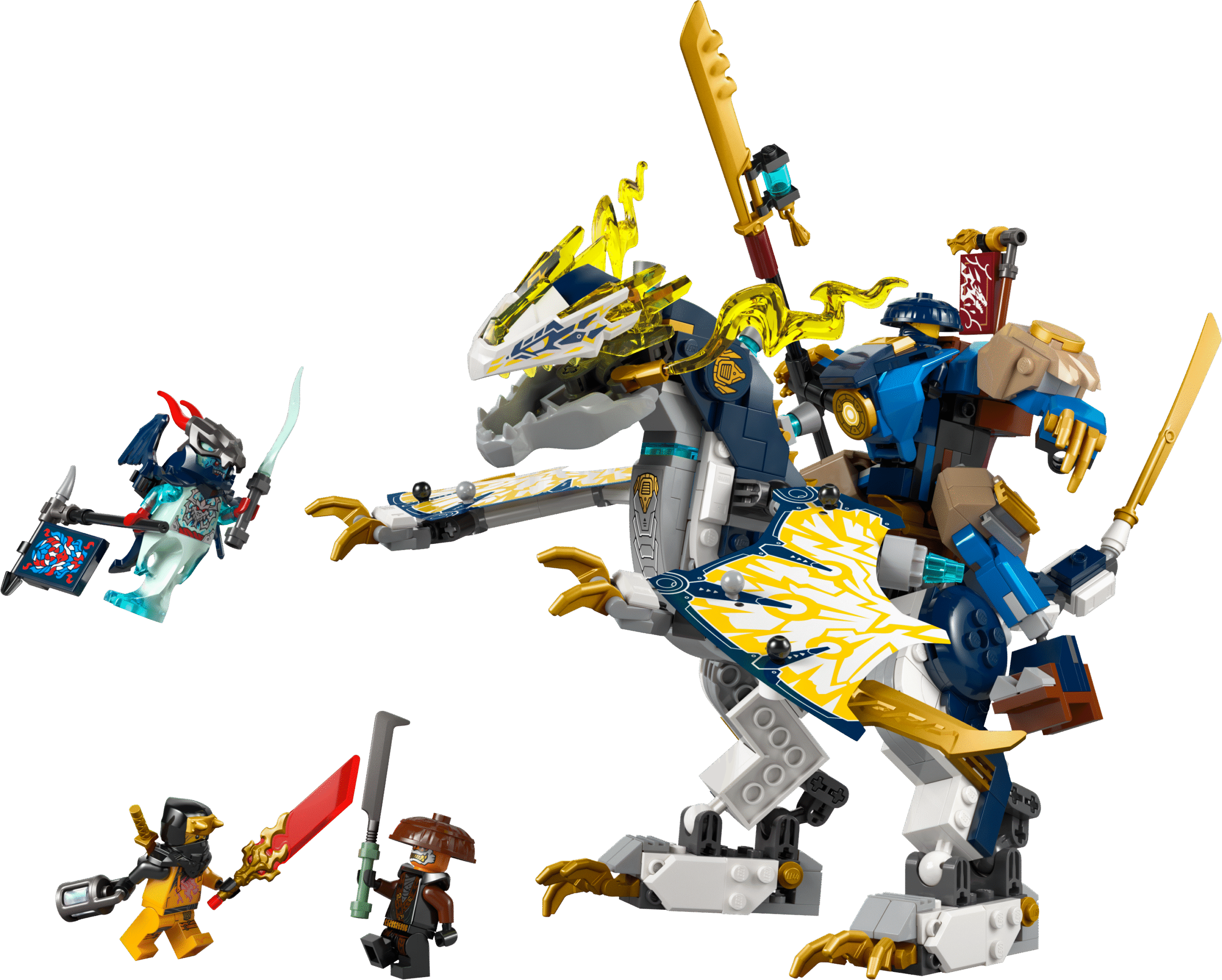 LEGO® NINJAGO® ehituskomplekt draakonimänguasja, roboti ja 4 minifiguuriga võimaldab lastel etendada lugusid telesarja NINJAGO Dragons Rising 3. hooajast.