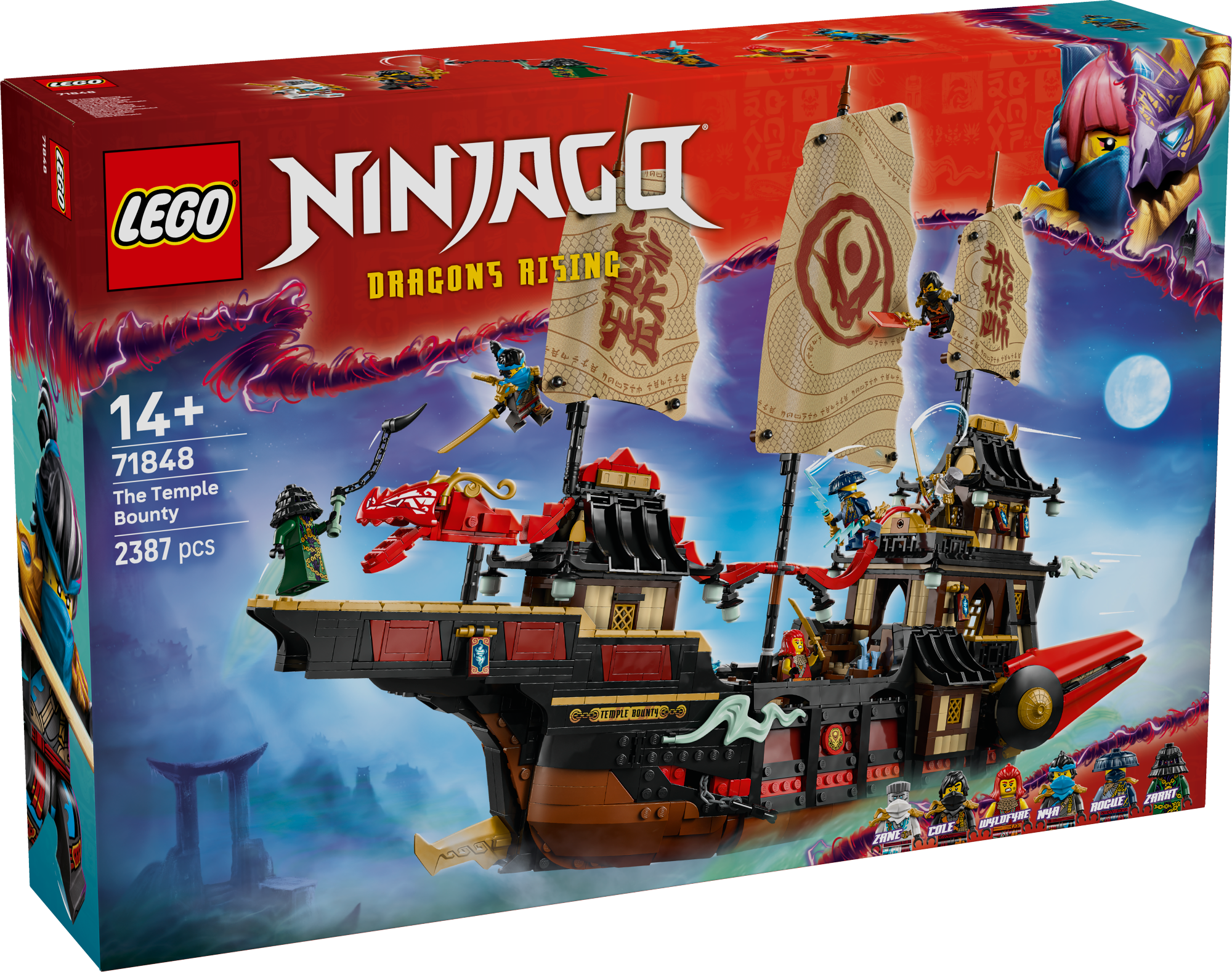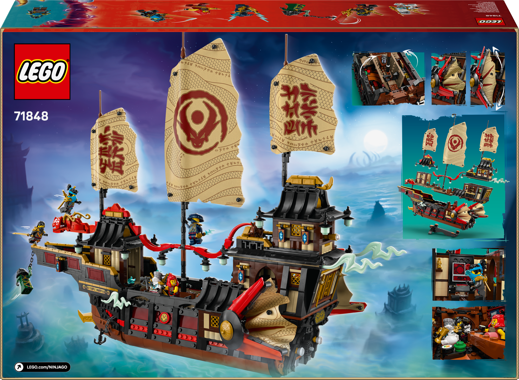 LEGO® NINJAGO® Templilaeva ehituskomplekt väljapanekuks ja lugude jutustamiseks sisaldab liikuvaid purjeid, salajast arvutit ja 6 minifiguuri.