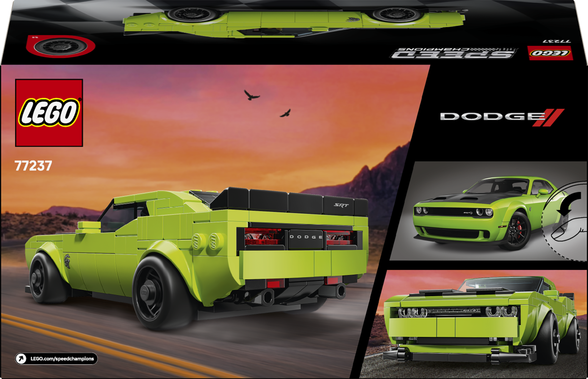 Alates 9-aastased lapsed ja muskelautode fännid saavad seda LEGO® Speed Champions Dodge Challenger SRT Hellcati sportauto mängusõidukit ehitada, esitleda ja sellega võidu sõita.