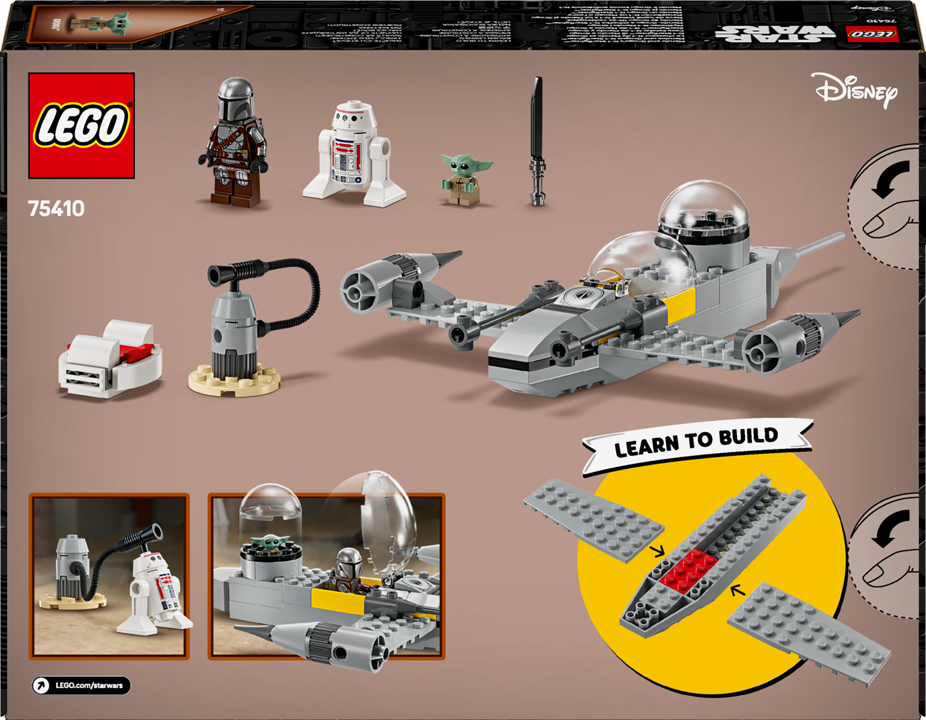 • Mando ja Grogu N-1 Starfighteri ehitusmänguasi – üle 4-aastased lapsed õpivad selle lõbusa stardikomplektiga ehitama LEGO® klotsidega ja looma ise fantaasialugusid sarja Star Wars: The Mandalorian™ kangelastega