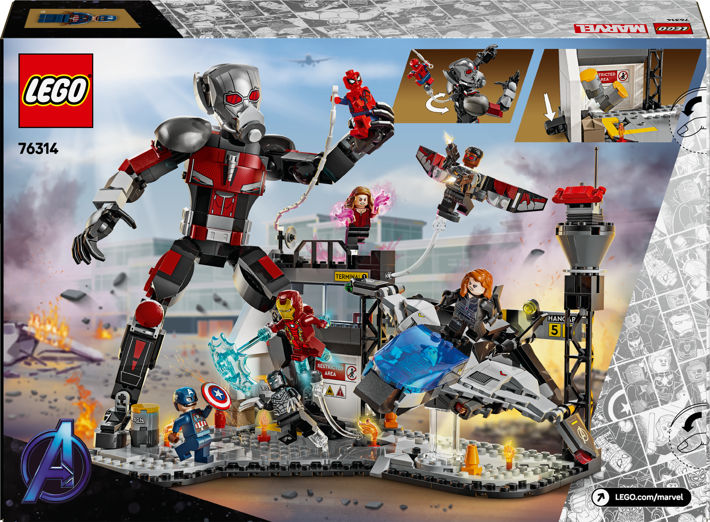 • LEGO® Marvel figuurid – komplektis on suur täielikult liigendatud Sipelgamehe LEGO figuur ja 8 minifiguuri: Kapten Ameerika, Talvesõdalane, Wanda, Pistrik, Iron Man, Spider-Man, Must Lesk ja Must Panter