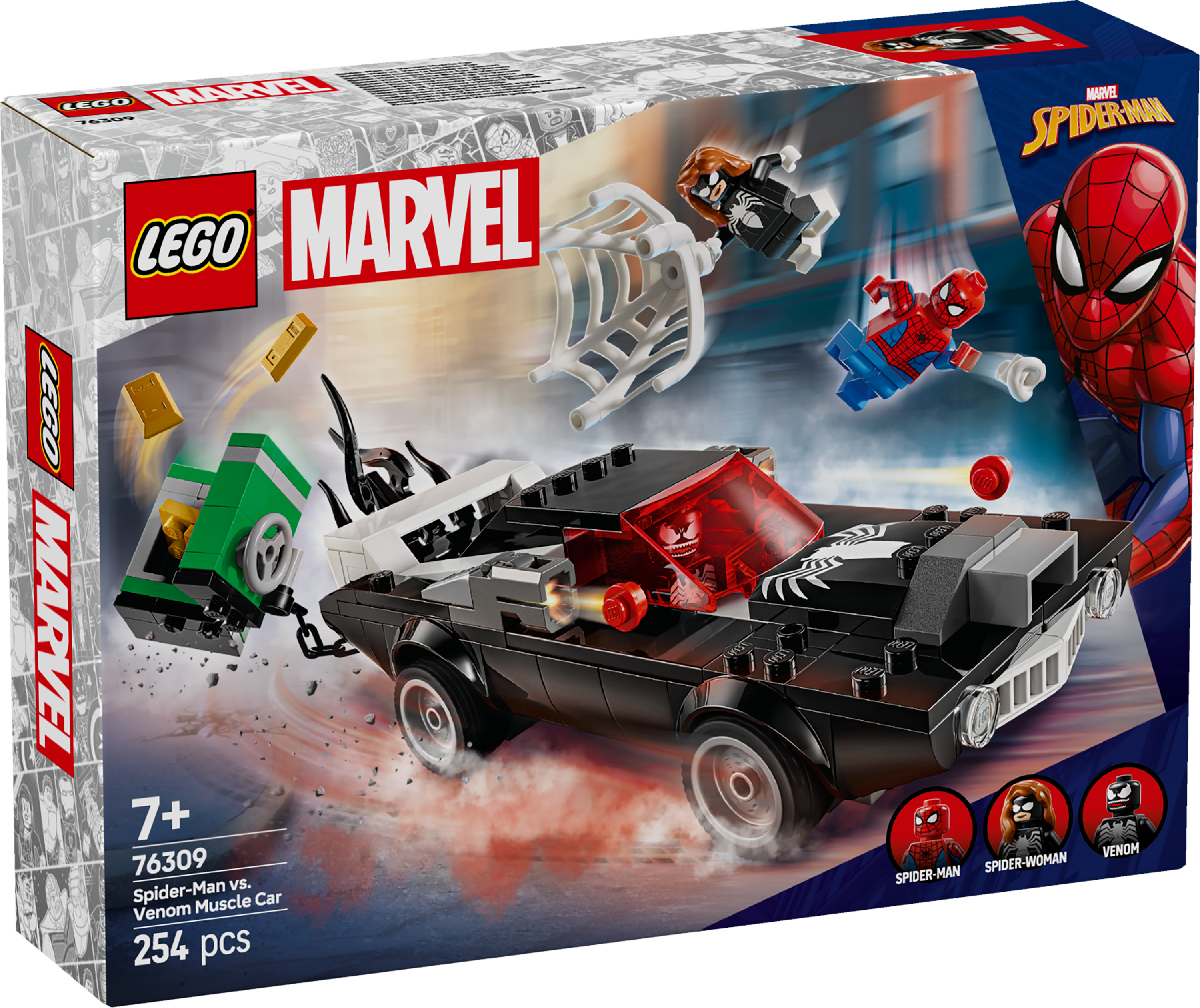 LEGO Marvel Spider-Man vs. Venomi muskelauto on lahe kuulsate tegelaskujudega ehitus- ja mängukomplekt, kus on vinge kokkupandav mänguauto.