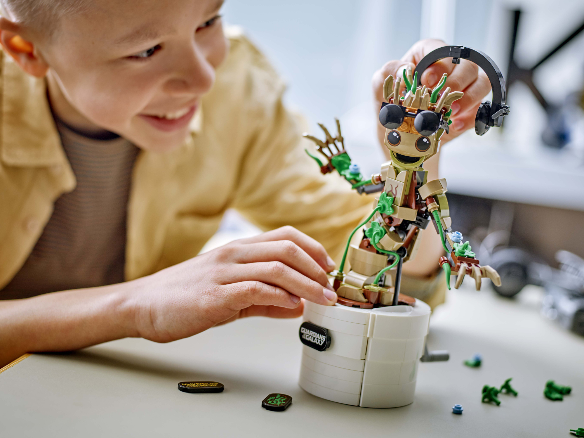 • Galaktika valvurite kingitus – anna Marveli Grooti, superkangelaste ja kokkupandavate LEGO® mänguasjade fännidele see interaktiivne mängukomplekt