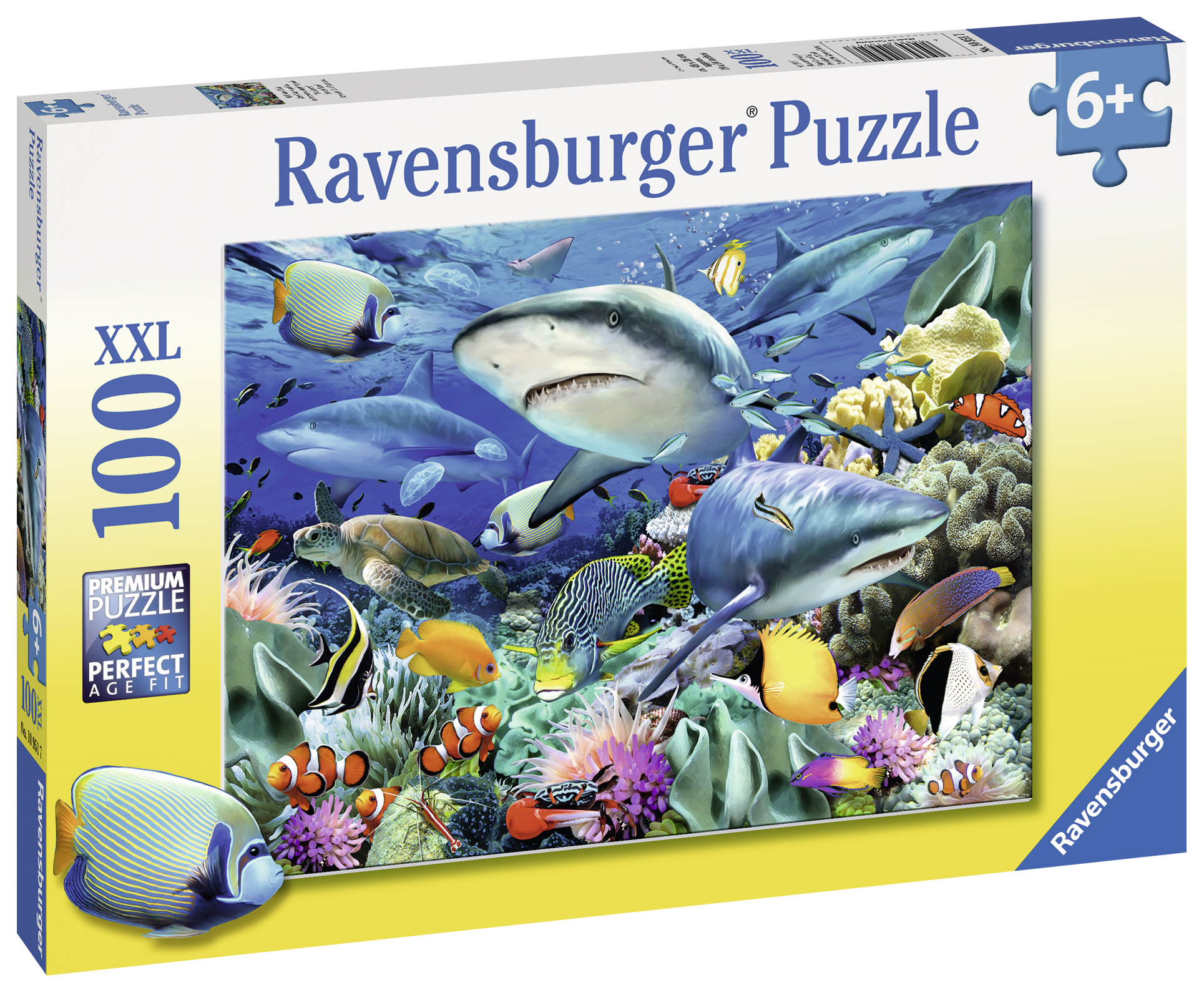 Ravensburger kvaliteetne laste pusle Haid , 100 tükki.