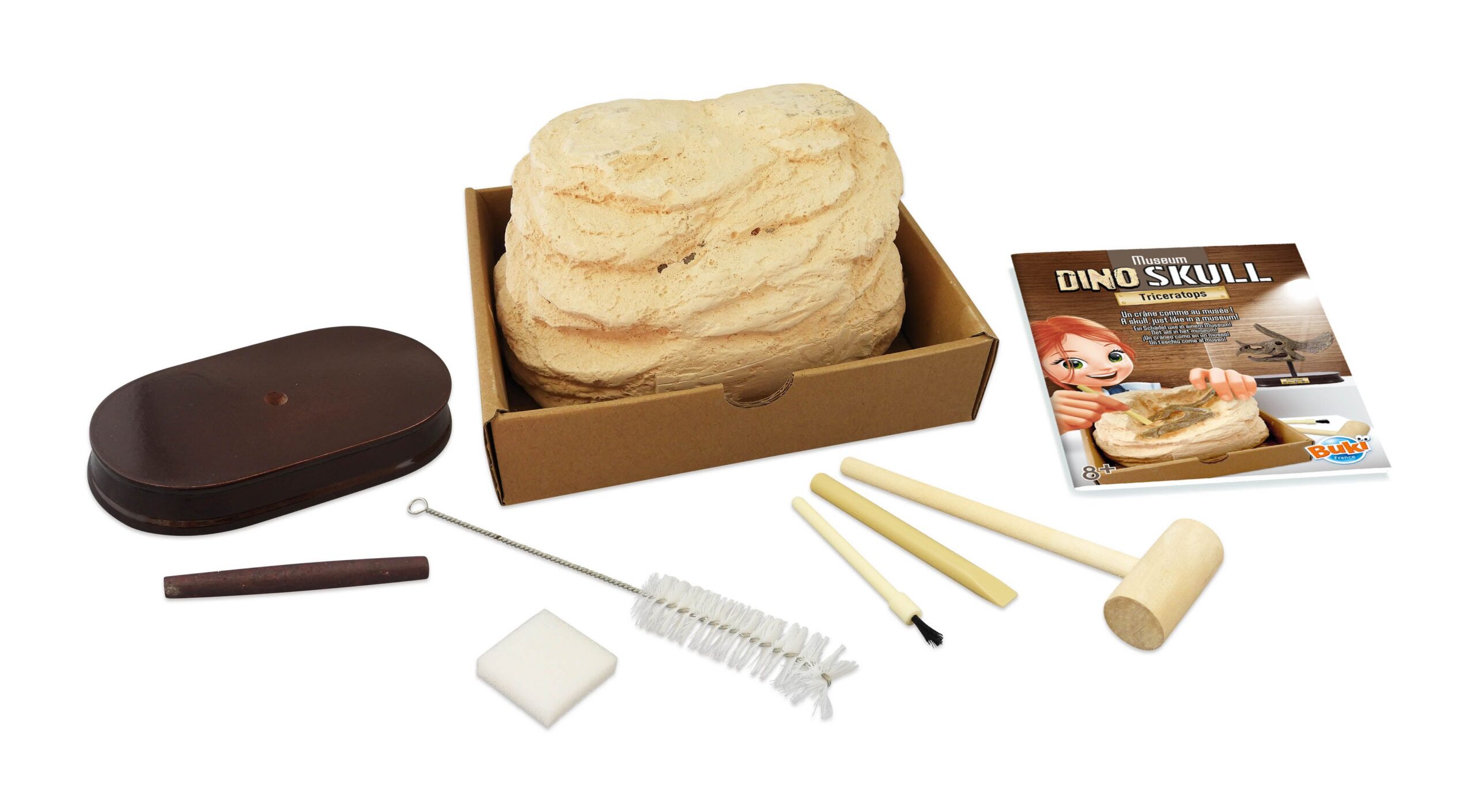 Kaeva kivimist välja dinosauruse pealuu. Kasuta selleks kaasasolevat haamrit, peitlit, pintslit. Väljakaevatud pealuu saab asetada kaasasolevale tugijalale ja eksponeerida nagu muuseumis.