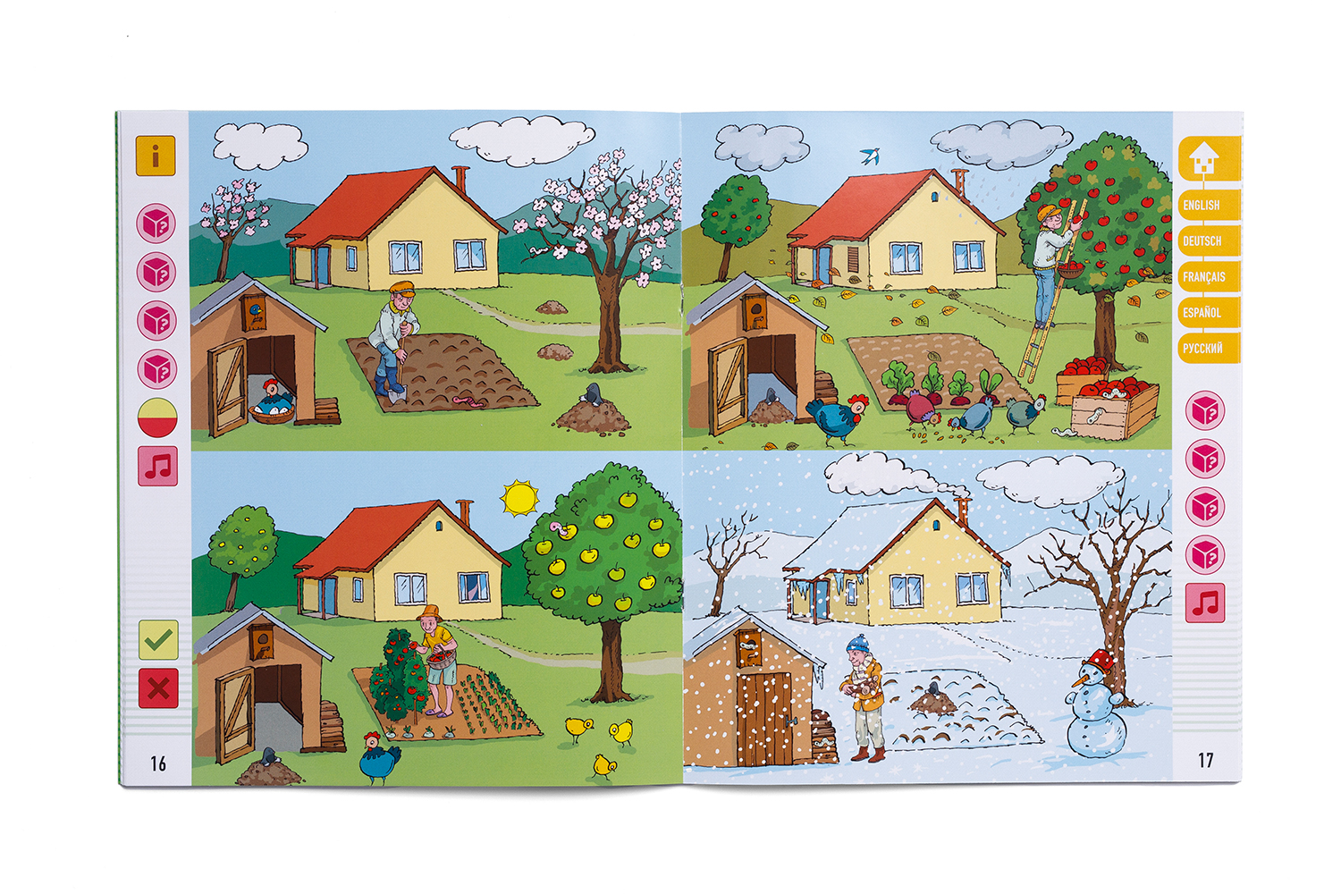 Lapsed saavad teada 18 spordiala, kuude ja nädalapäevade kohta ning kuulavad üle 200 riimi. Raamatus on ka palju viktoriine, mõistatusi ja populaarseid laule, mida kaasa laulda. Kokku peidab teos endas 1450 salvestust, nii et avastamisrõõmu jätkub pikaks ajaks.