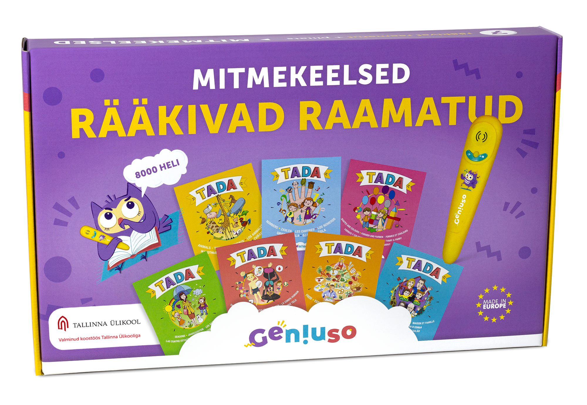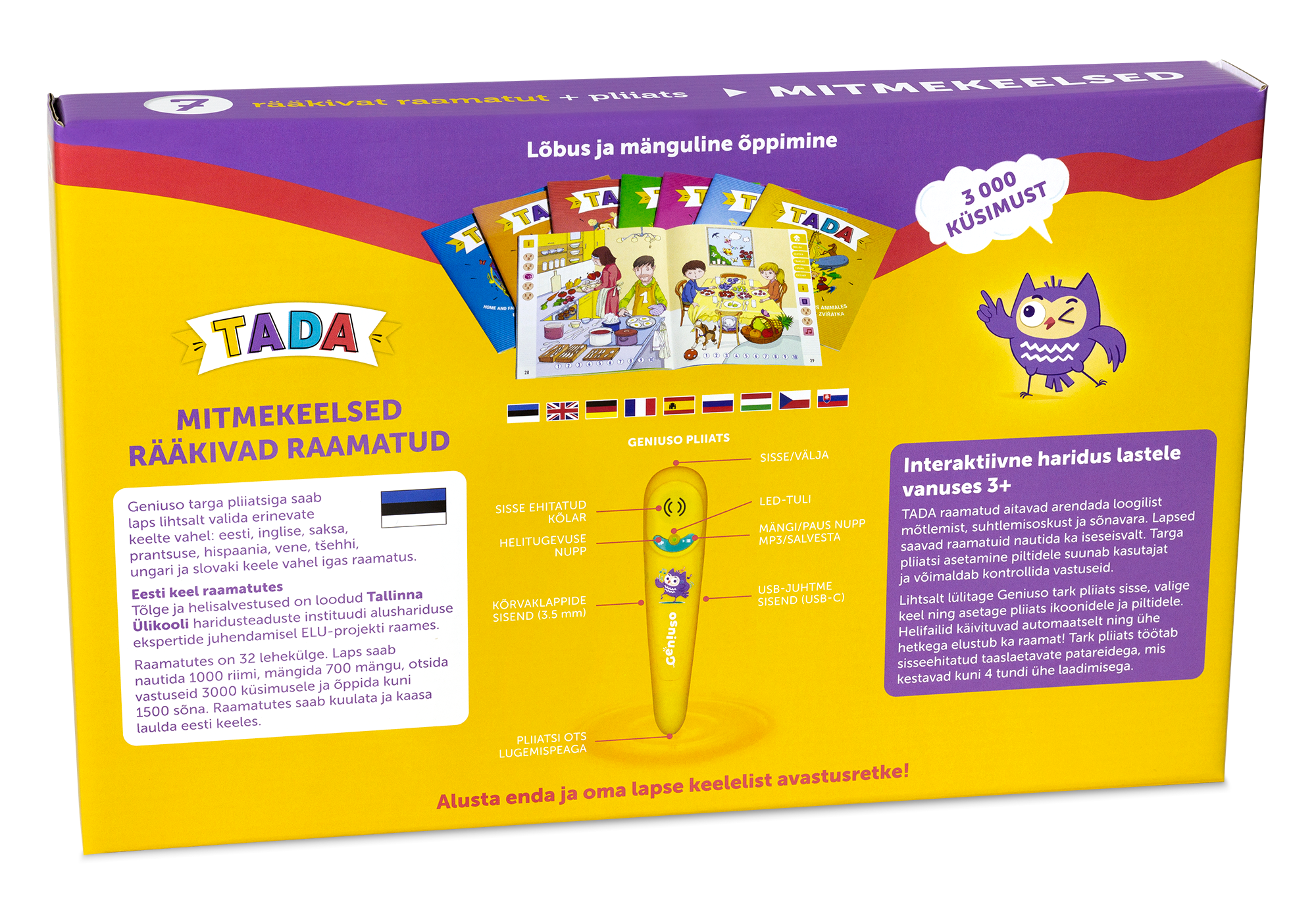 TADA rääkivate raamatute ja targa pliiatsi abil saab õppida üheksat keelt: eesti, inglise, saksa, prantsuse, hispaania, ungari, tšehhi, slovaki ja vene keelt.