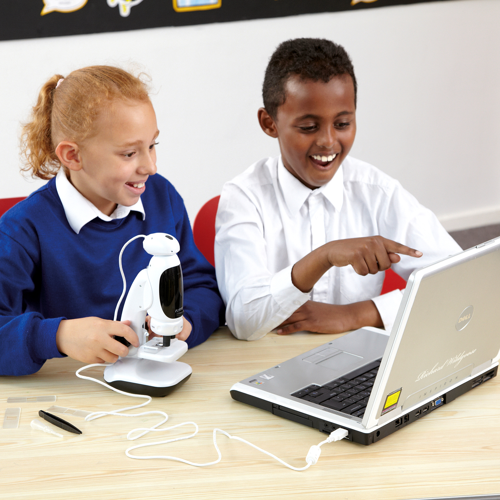 Kolm ühes digitaalne mikroskoop, mida saab kasutada iseseisva seadmena või kaasaskantava väliseadmena. Lihtne keeratav mehhanism võimaldab lastel lülitada 50-, 100- ja 200-kordsele suurendusele, mikroskoobi esiosal on kahekordne suum. Kaasasolev tarkvara võimaldab lastel vaadata ja muuta pilte otse arvutis/tahvlis. Seadmel on lihtsalt keeratav fookus ja kaks eredat LED-lampi, et lapsed saaksid valgustada ja vaadata paljusid eri esemeid ja materjale. Värvid võivad erineda.