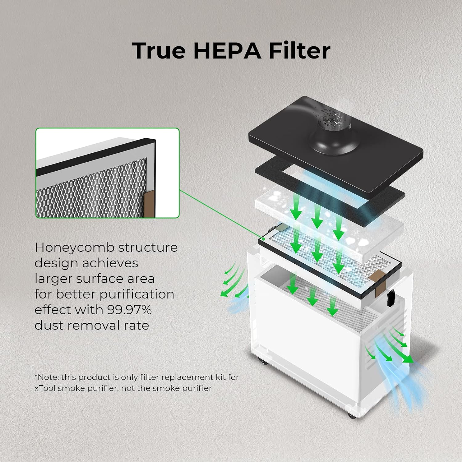 * Eelfilter püüab kinni nähtava suitsu ja tolmu. Eelfilter on 25 mm paksune ja 2,5 korda pikem kui teistel turul pakutavatel filtritel.